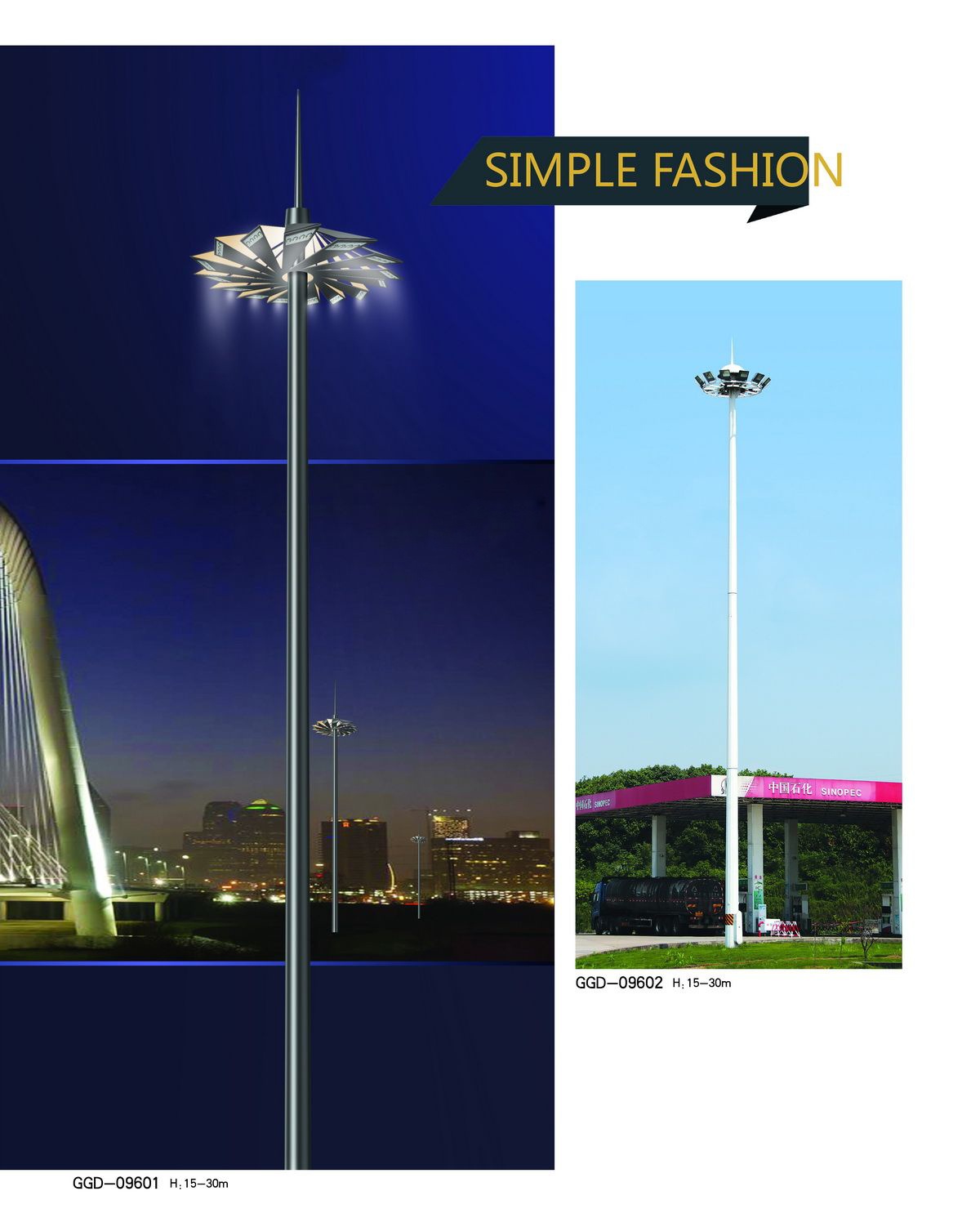 高桿燈的使用范圍:城市廣場、車站、碼頭、貨場、公路、體育場、立交橋。