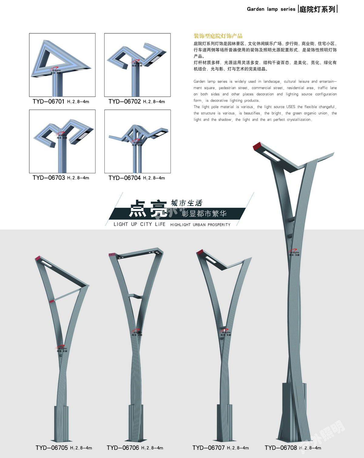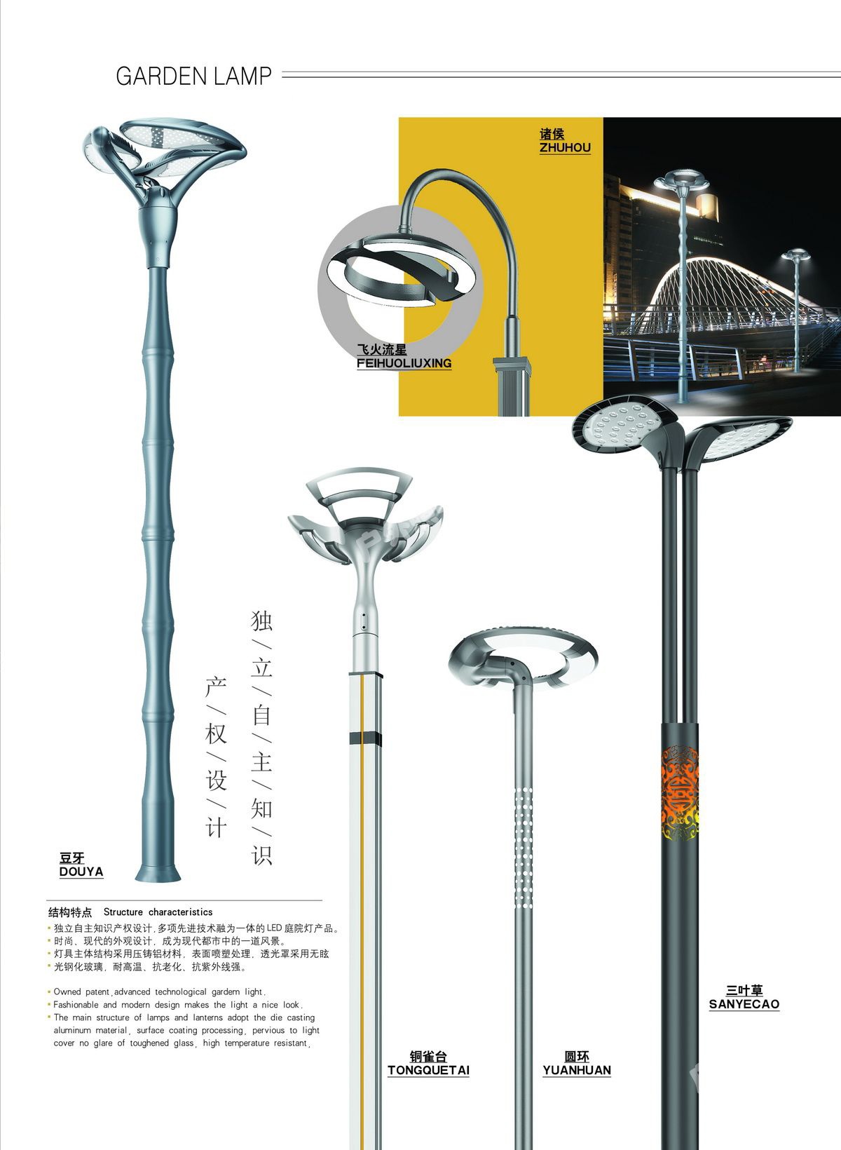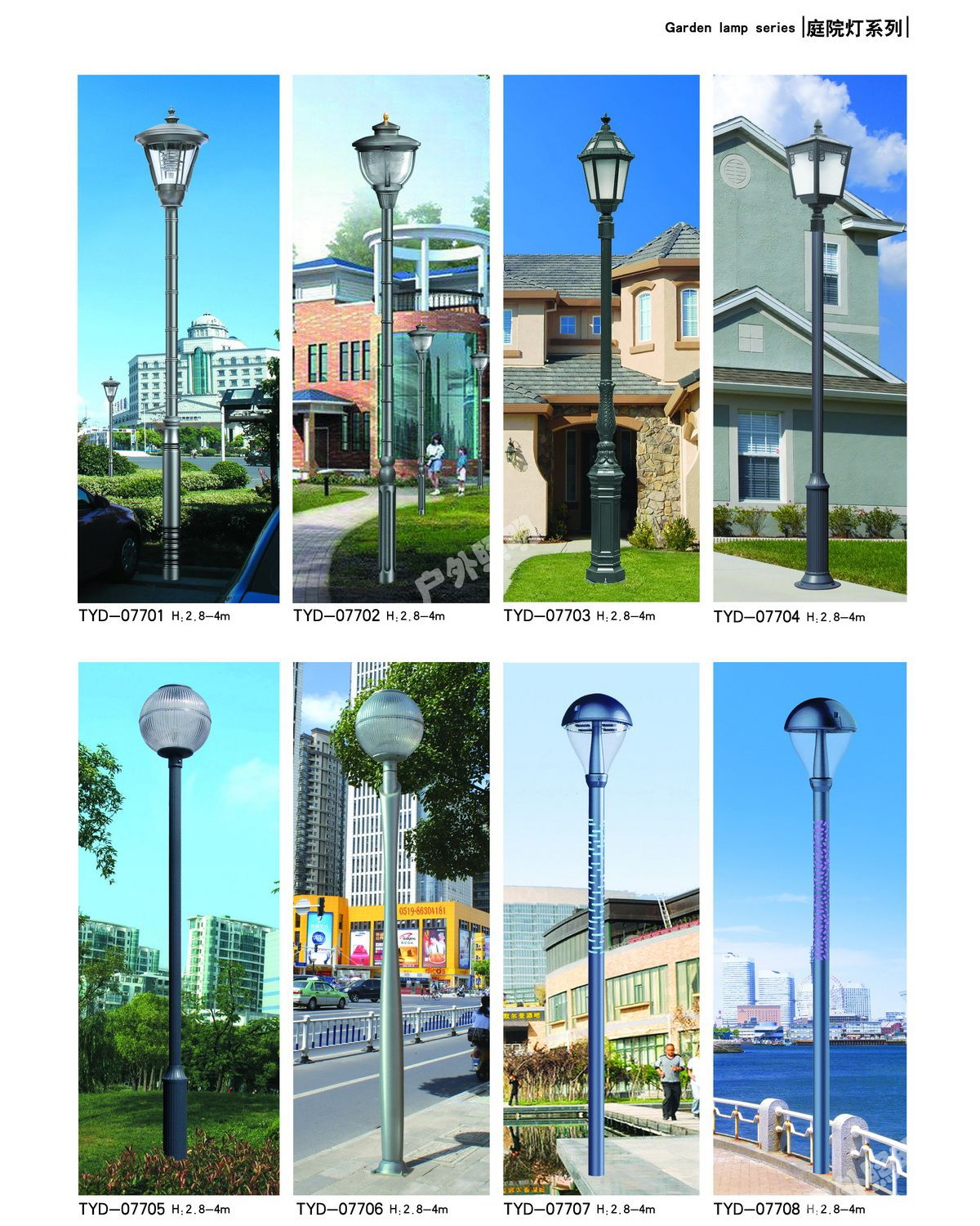 庭院燈其具有多樣性、美觀性具有美化和裝飾環(huán)境的特點,所以也被稱之為景觀庭院燈。主要應(yīng)用于城市慢車道、窄車道、居民小區(qū)、旅游景區(qū),公園、廣場等公共場所的室外照明,能夠延長人們的戶外活動的時間,提高財產(chǎn)的安全。